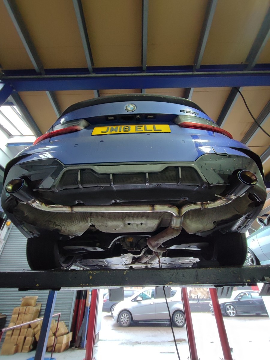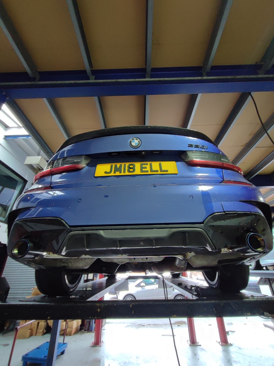 BMW 3 Series / Z4 – Custom Rear Exhaust Section & Carbon Fibre Blue-Effect Tips at MIJ Exhaust!