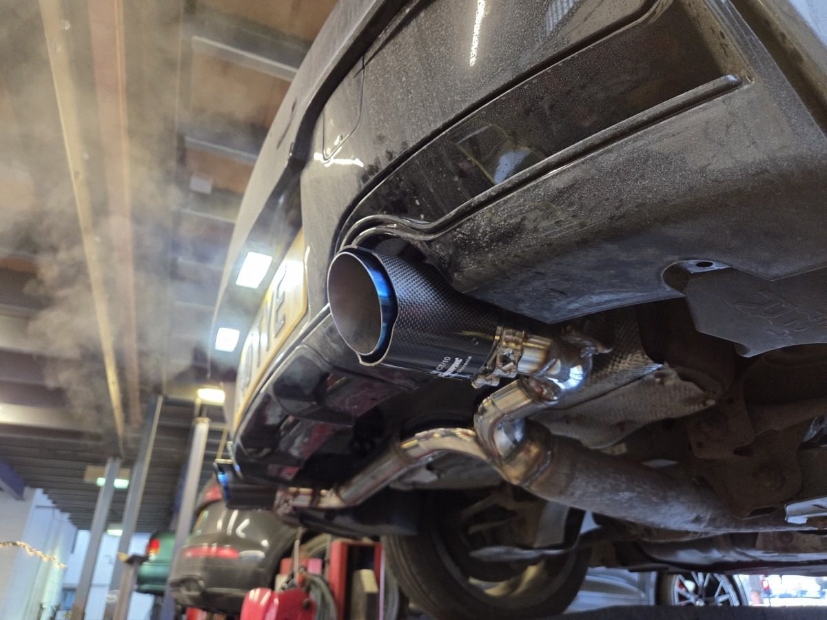 To finish off the upgrade, we fitted our signature blue-effect carbon fibre tailpipes on both ends, giving the M135i a striking, sporty look that perfectly complements its performance character.