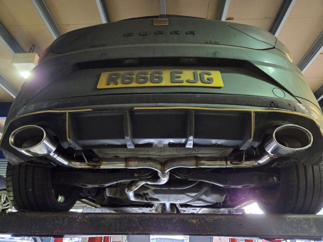 The system is finished with dual oval tips, giving the rear a clean yet sporty look that perfectly complements the Cupra’s styling.
