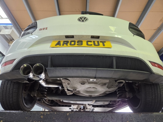 The factory mid resonator and rear back box were removed and replaced with a straight-through pipe configuration, allowing exhaust gases to flow more freely. This results in a sharper throttle response and a noticeably louder, more defined exhaust note, bringing out the sporty character of the GTI.