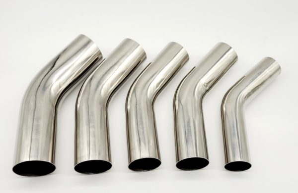 Outer diameter: You choose from drop down options – includes 1.75″/45mm up to 3″/76mm stainless steel 45 degree elbows