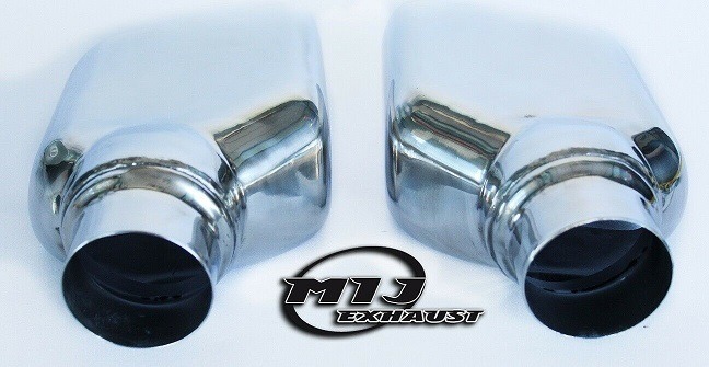 Pair of high grade T304 stainless steel BMW exhaust tips; will not rust and are non-magnetic.