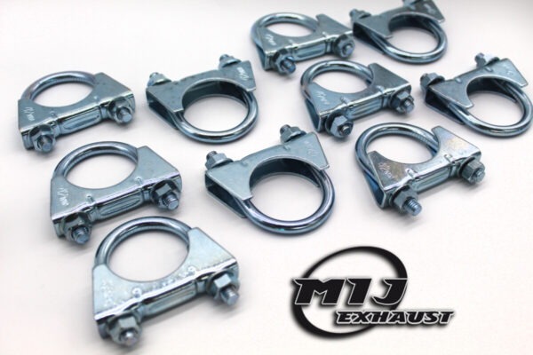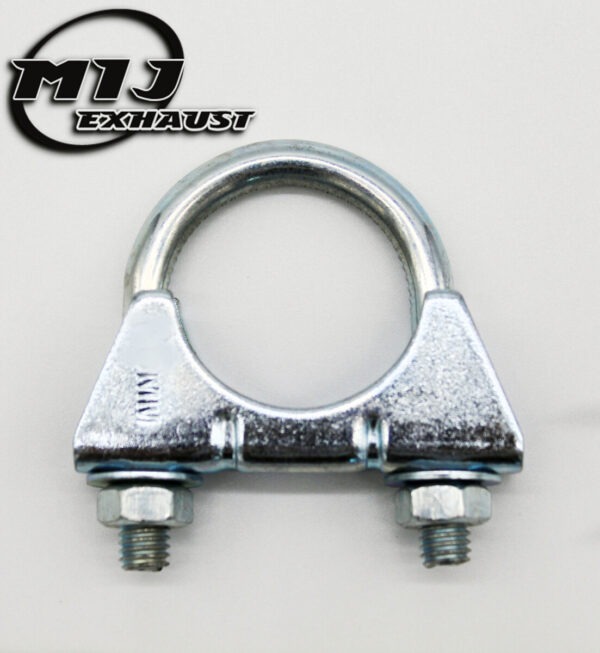 These clamps are called U bolt clamps, simply because they are in the shape of the letter U. It has 2 ends, both threaded, a plate and 2 bolts to fasten it in place. It is traditionally used to fit around pipes and bolt them in place. It is a quick and easy way to securely fit two pipes together and to provide support.